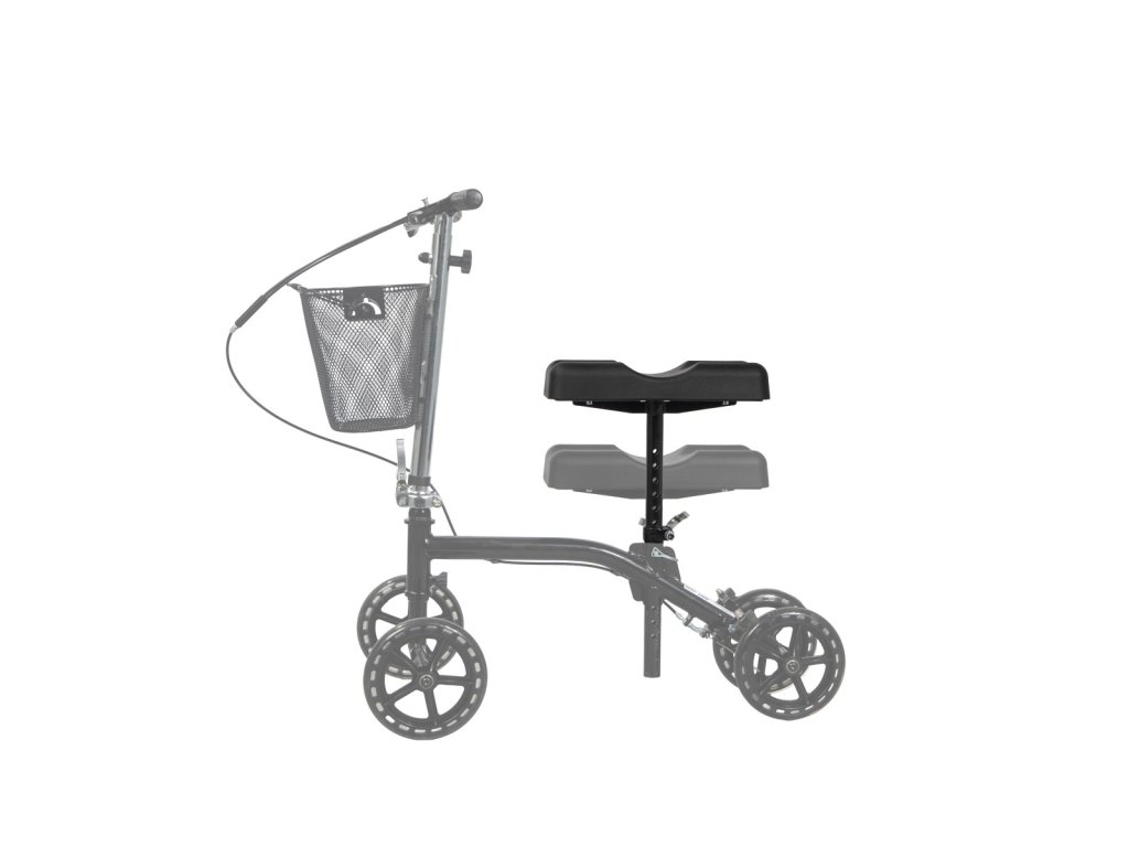- Pohodlná opora: Sedadlo s PU podložkou pod koleno je výškovo nastaviteľné a šetrné k pokožke.