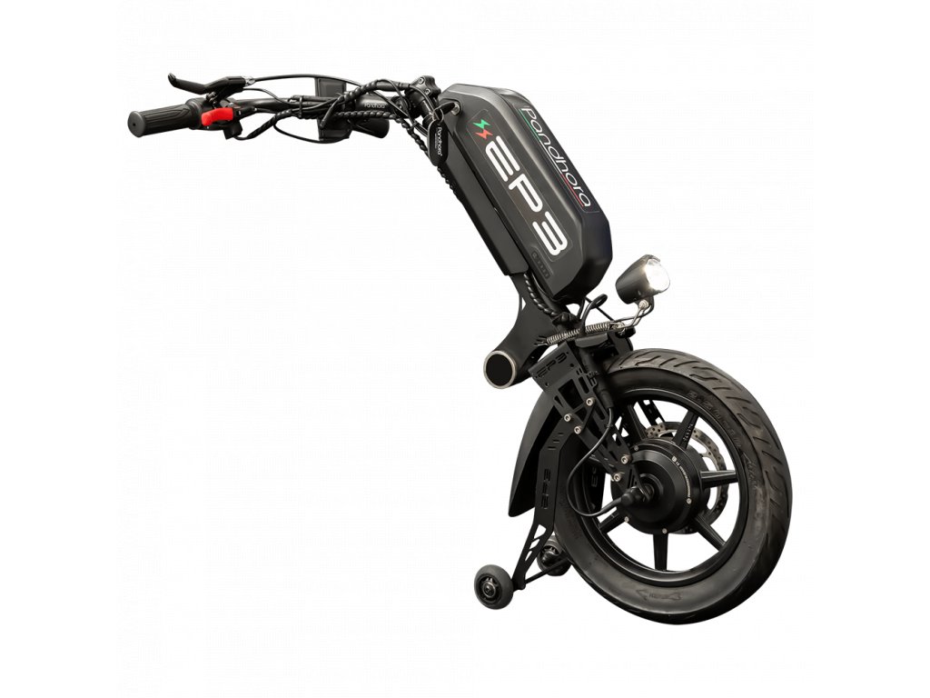 Jednou z výnimočných vlastností tohto systému je blatník s integrovaným stojanom, ktorý umožňuje, aby EP3 zostal v stabilnej polohe aj v prípade, keď nie je pripojený k invalidnému vozíku. Pripojenie je veľmi jednoduché - stačí priblížiť EP3 k invalidnému vozíku a pripojiť.