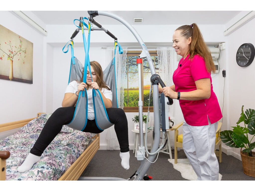 - Presun pacienta z postele na toaletnú stoličku alebo z toaletného či invalidného vozíka na polohovaciu posteľ.