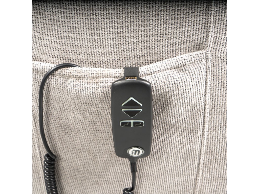 - Plynulé polohovanie: Jediným stlačením tlačidla nastavíte zdvihnutie kresla, sklopenie operadla alebo zdvihnutie opierky nôh pre dokonalú polohu pri spánku či sledovaní TV.