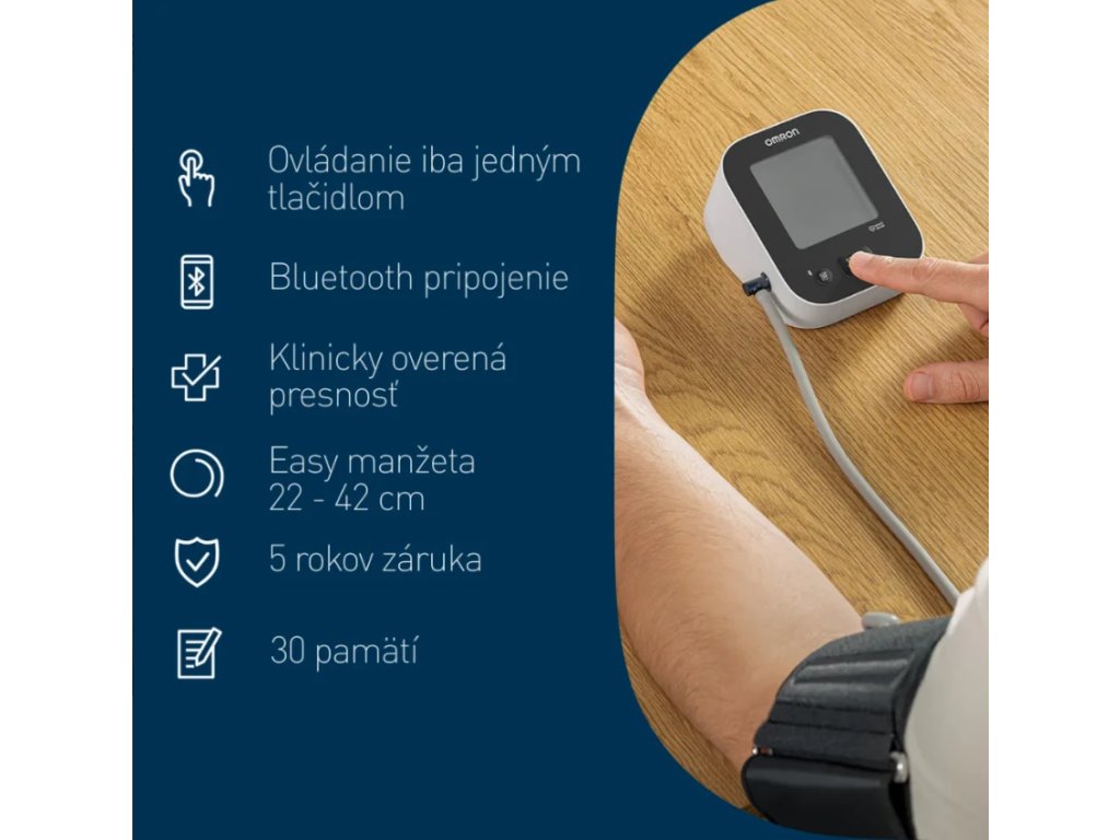 - Bluetooth pripojenie k smartfónu a aplikácii OMRON connect - umožní jednoducho sledovať vaše merania a zdieľať ich napríklad s lekárom