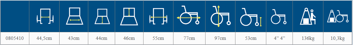 | 0805410 | 44,5 cm | 43 cm | 44 cm | 46 cm | 55 cm | 77 cm | 97 cm | 53 cm | 4” 4” | 136 kg | 10,3 kg |