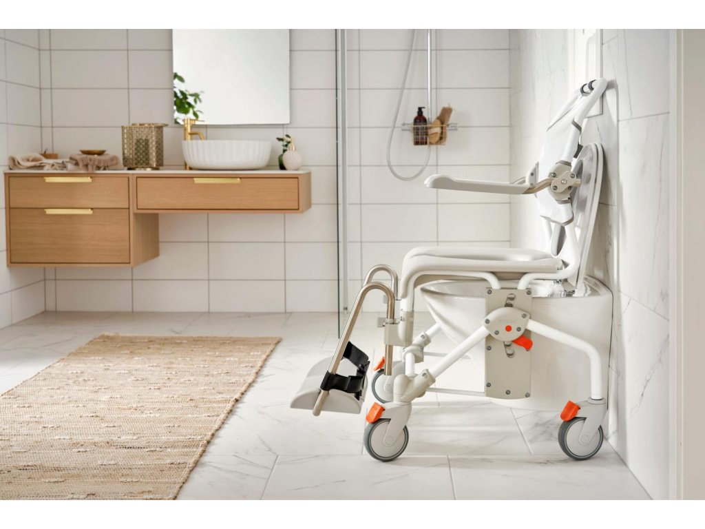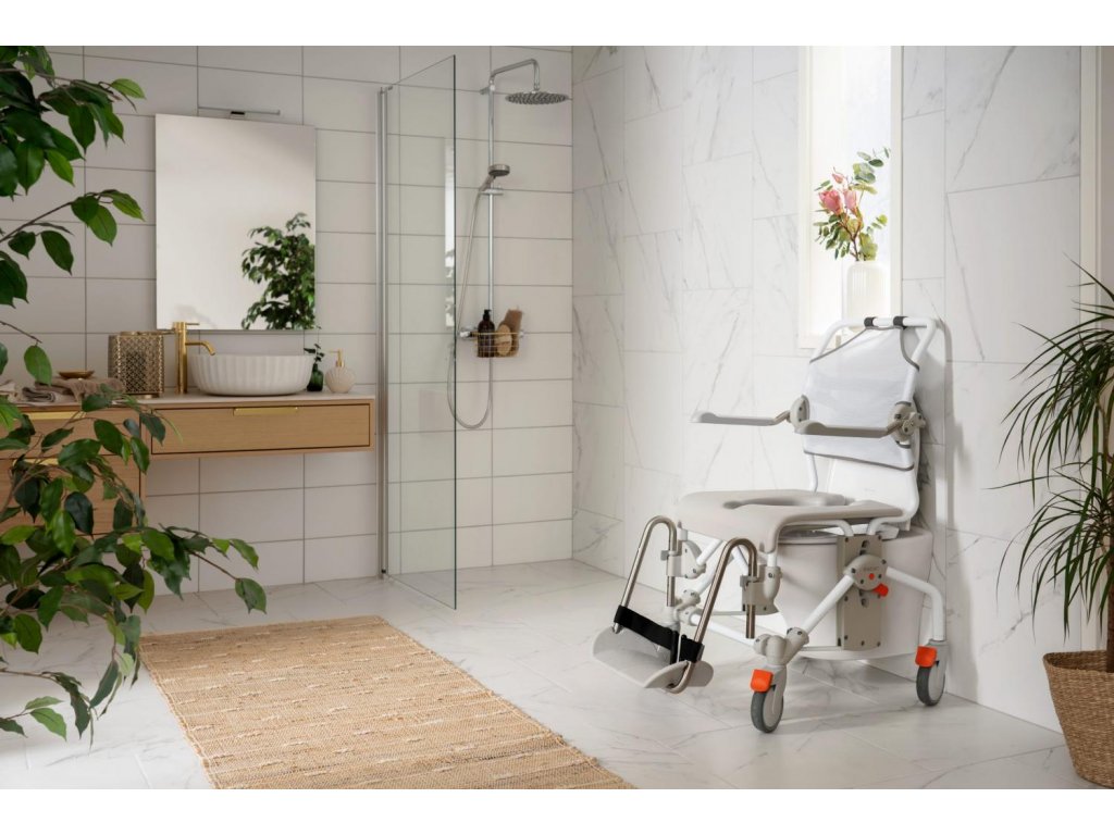 Flexibilný sprchový toaletný vozík poháňaný obsluhou, poskytuje opatrovateľom najlepší možný prístup k úlohám osobnej starostlivosti.