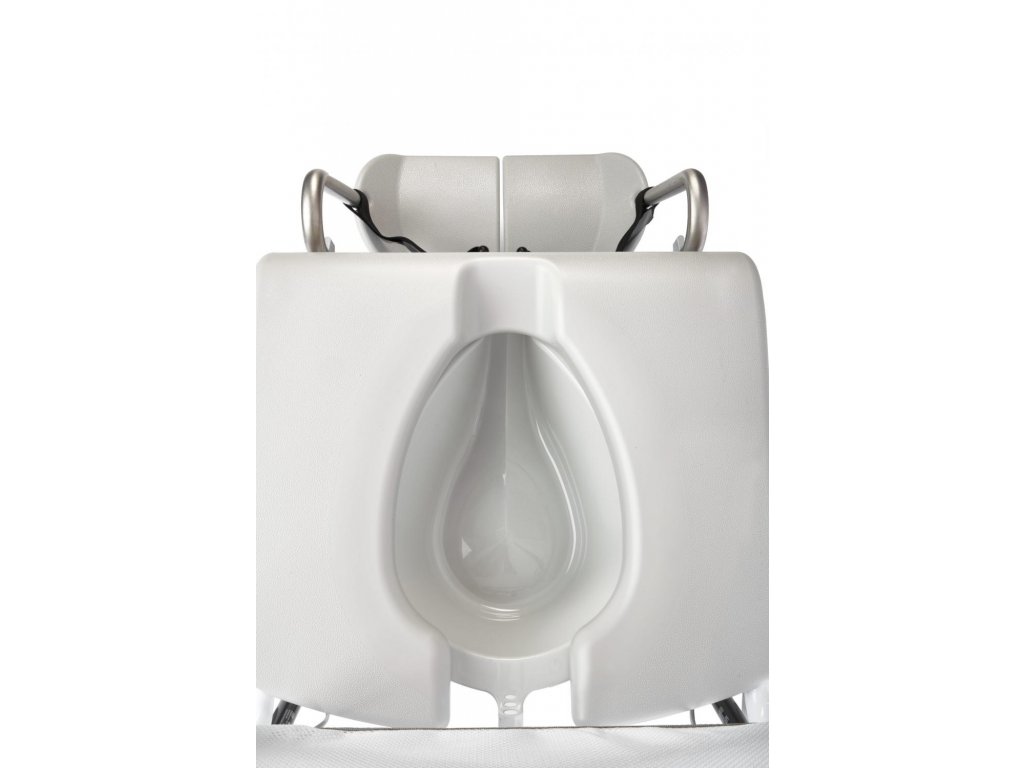 Sedadlo má zadný otvor, ktorý poskytuje opatrovateľovi ľahký prístup, keď pomáha užívateľovi pri osobnej starostlivosti.